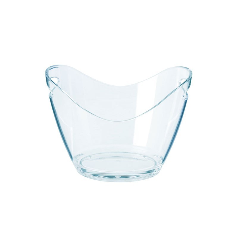 Champañera acrílica de la marca Boston Acrylic de 12 litros para 8 botellas. Fabricado en material acrílico. De forma ovalada que le da elegancia a su mesa. Sirve para todo tipo de botellas y las mantiene a una temperatura perfecta para su consumo. Dispone de dos agarres para facilitar su transporte y tiene un soporte interior que favorece la inclinación de la botella.