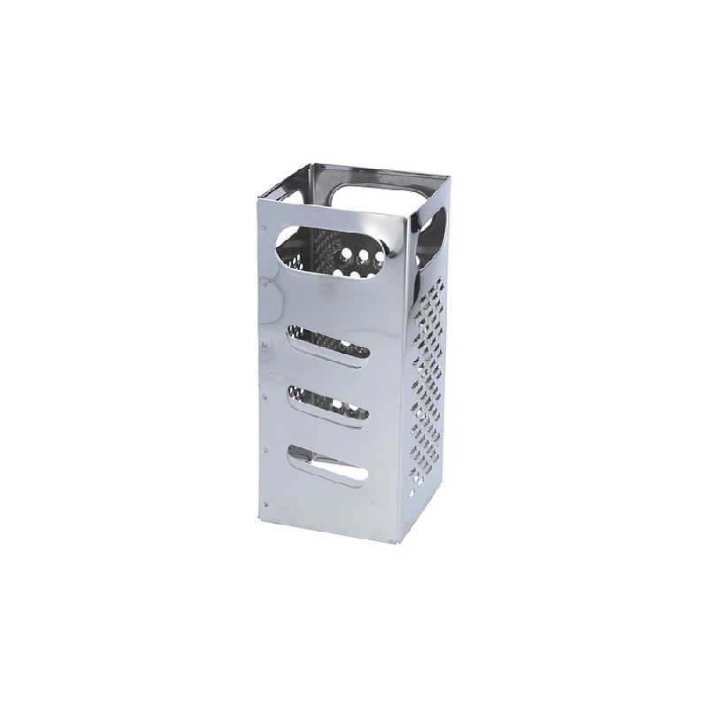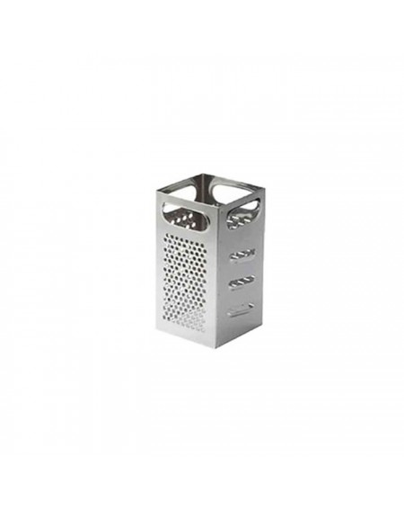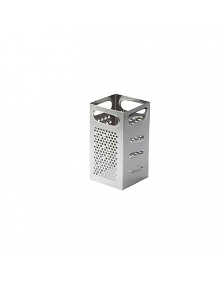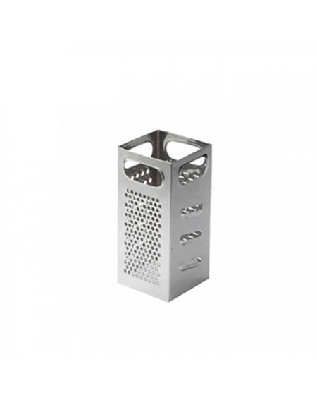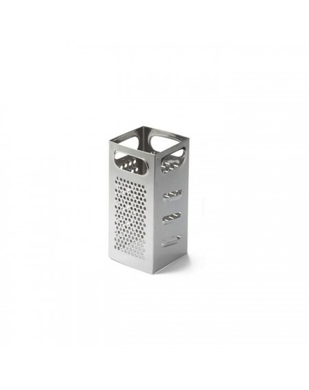Rallador de 4 caras de acero inoxidable para uso profesional. Utensilio de cocina diseñado para rallar o cortar alimentos, como por ejemplo queso, pan, cebolla o chocolate. Por eso, es de gran utilidad para todo tipo de negocios de hostelería y para pastelerías. Permite utilzarlo por 4 lados diferentes de manera fácil y cómoda.