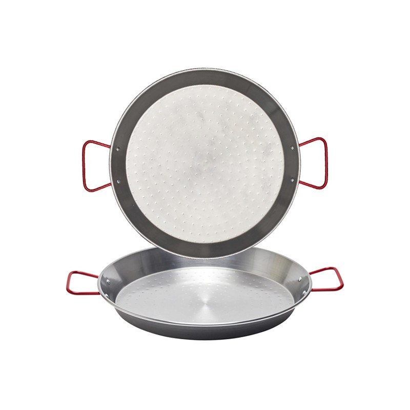 Paellera de la marca Garcima de 42 cm de diámetro. De acero inoxidables muy durarero, ya que el acero es un material que ni se deforma, ni se raya, ni se estropea con el paso del tiempo. Ideal para hacer paellas, con una capacidad para diez raciones. Para un cocinado uniforme recomendamos el uso de un paellero.