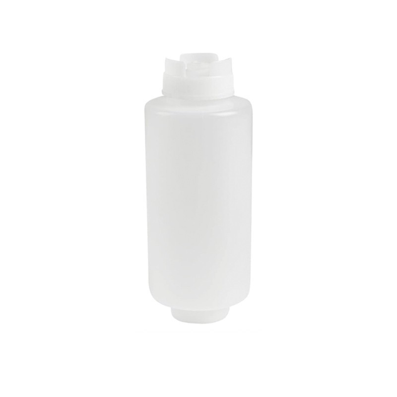 Botella FIFO Dual Clear de 16 oz de Jwins, diseñada para un dispensado preciso y eficiente de salsas y aderezos.