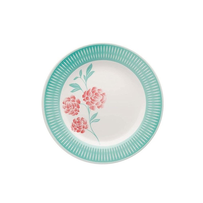 Plato llano de la colección de Bloom de la marca de Oxford de 24 cm de diámetro con estampado de flores en un lado del plato. También, con un color verde agua. Ideal para cualquier mesa.