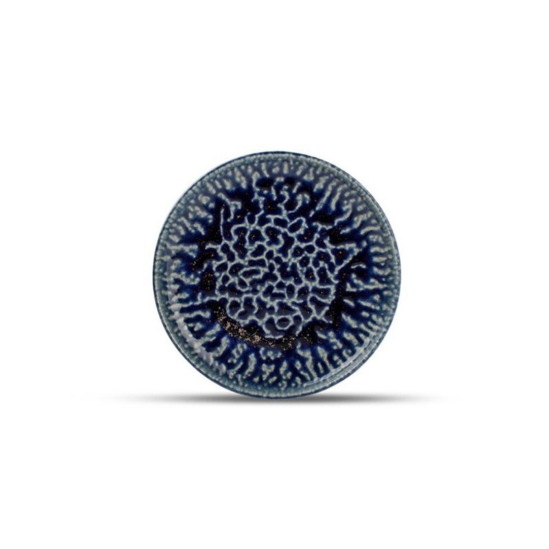 Plato postre de la colección Cobalt de la marca Fine 2 Dine de 21 cm de diámetro en tonos azules oscuros, una pieza ideal para cualquier tipo de mesa.