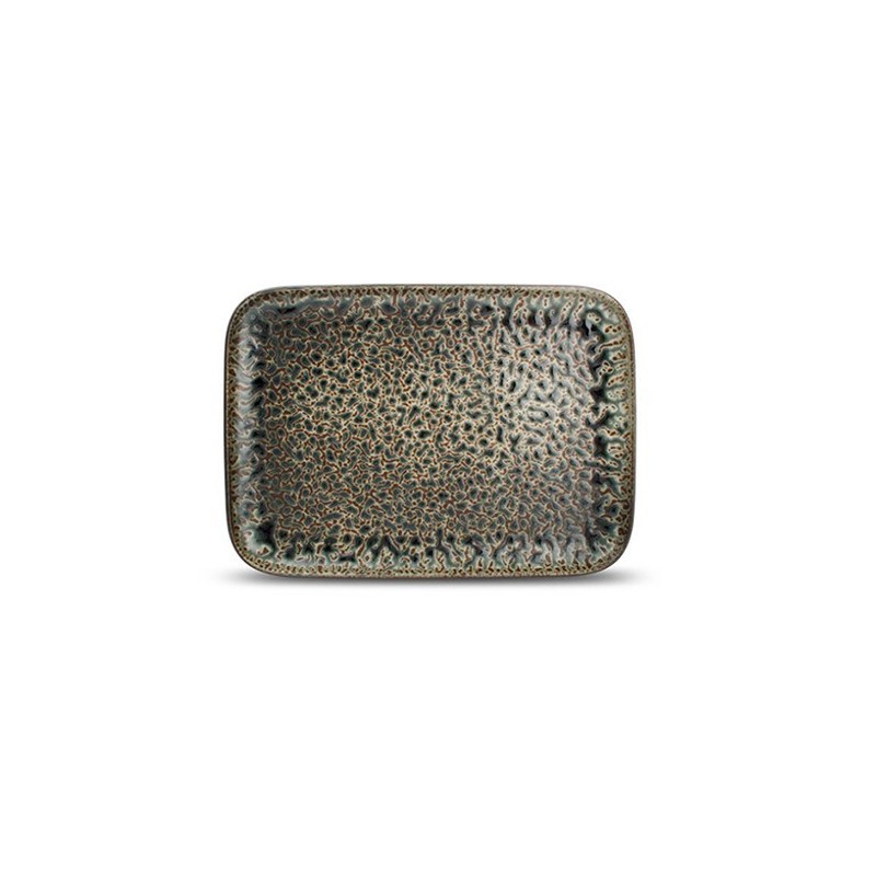 Fuente rectangular de la colección Esmerald de la marca Fine 2 Dine de 28x20 cm de diámetro. Las vetas verde esmeralda profundas y los tonos marrón oxidado fluyen juntos en esta fuerte vajilla Oxido esmeralda. Con su exclusiva superficie caprichosa y su aspecto rugoso, esta gama de porcelana te invita a crear composiciones aventureras. Todos los artículos son únicos debido al acabado hecho a mano con esmaltes reactivos.