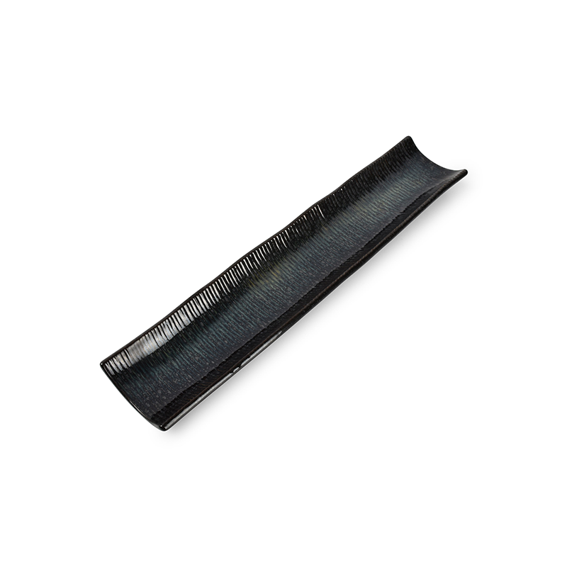 Fuente rectangular de cerámica 39x8 cm, diseño minimalista y texturizado, perfecta para presentaciones sofisticadas.