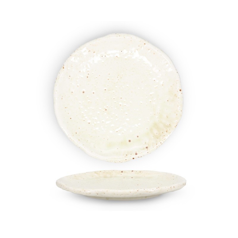 El plato de postre Beige Vida de F2D destaca por su acabado artesanal y su tonalidad natural, ideal para restaurantes modernos.