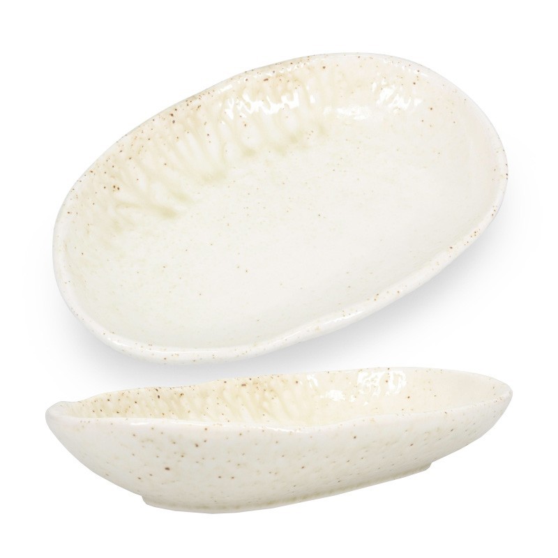 La fuente oval honda Beige Vida es una pieza versátil con esmalte reactivo que aporta elegancia natural a la presentación.