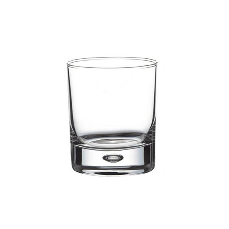 Vaso otr del modelo Centra de la marca Pasabahce de 11 oz. Vaso hecho de materia prima de alta calidad, por lo que estas cristalería tienen más claridad en aspecto y aportan una sensación elegante. Destaca su diseño con burbuja de aire en su base que lo hace elegante.