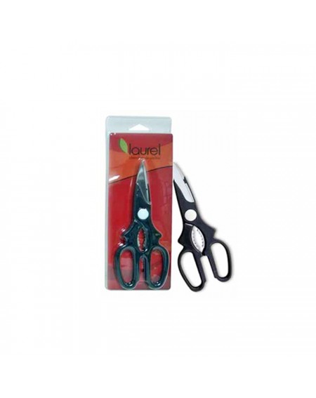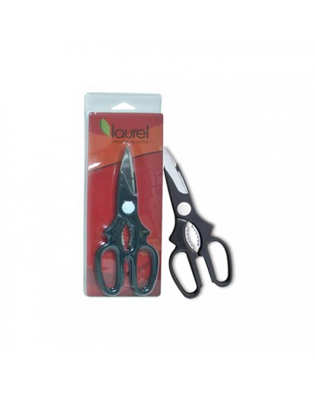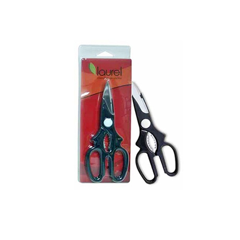 Tijeras de cocina de la marca Laurel. De acero inoxidable con cuchillas muy afiladas con finos dentados que cortarán cualquier alimento sin resbalar. Adecuadas para cortar alimentos duros, ingredientes blandos y resbaladizos. De alta resistencia tiene una construcción sencilla y bien diseñada que puede mantenerse limpia en todo momento.
