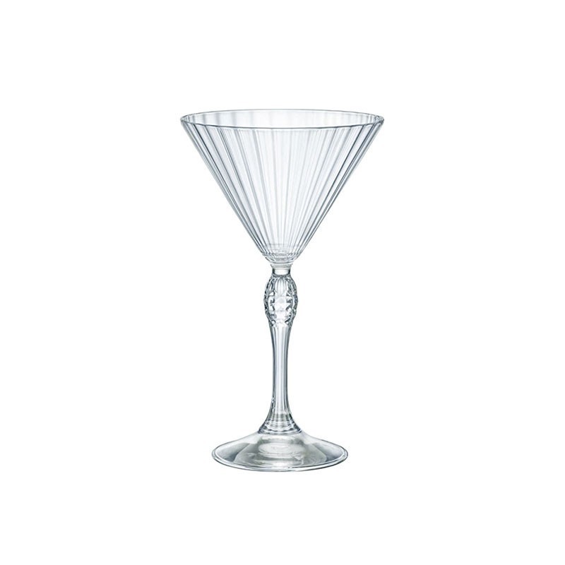 Copa martini del modelo America20's de la marca Bormioli Rocco de 8 oz. Fabricado en vidrio transparente elegante de gran calidad con un toque moderno. Borde fino para una degustación perfecta de licores, cócteles, vino o combinados. Relieve en la copa y en el pie para una experiencia única. Duraderas en el uso diario gracias a su resistencia al choque térmico.