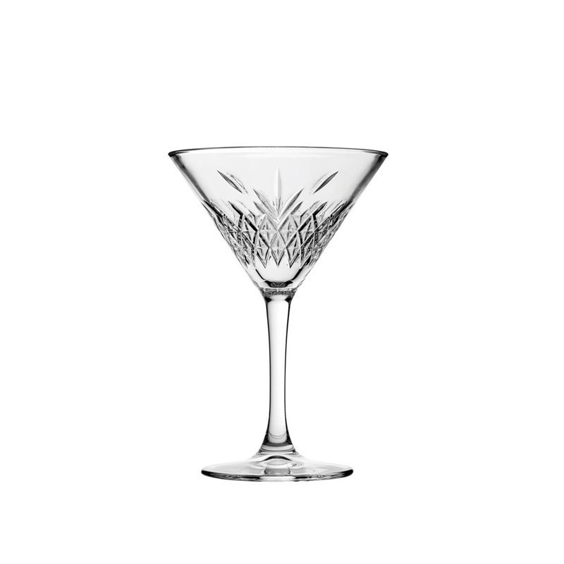 Copa martini del modelo Timeless de la marca Pasabahce de 8 oz, una pieza ideal para cualquier mesa. Realizado en vidrio templado de alta calidad resistentes al calor. El borde enrollado aumenta la resistencia a las astillas para un uso prolongado. Tiene un impresionante diseño de cristal tallado con una versión contemporánea de la tendencia vintage.