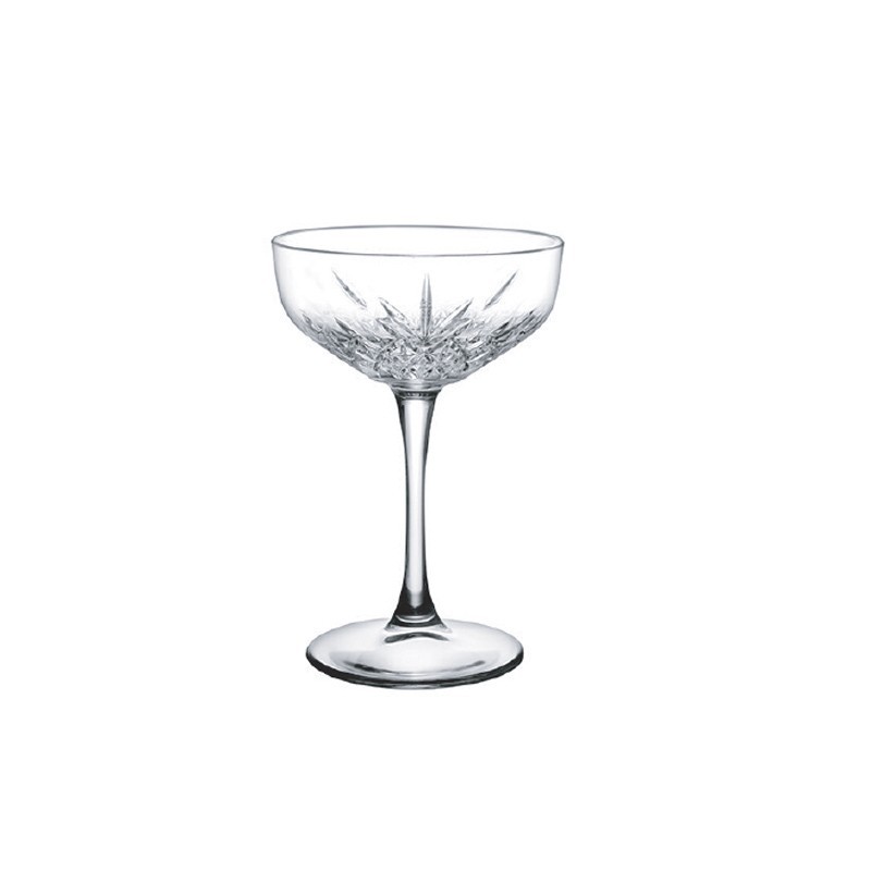 La Copa Cocktail 9 oz de la colección TIMELESS de PASABAHCE destaca por su estética vintage con grabado estilo diamante. Es perfecta para martinis, margaritas y cócteles especiales, ofreciendo una presentación elegante en cada servicio.