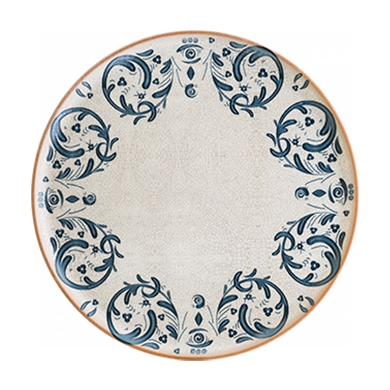 Plato pizza del modelo Viento de la marca Bonna de 32 cm de diámetro, de tonos azules y blancos. Una pieza de alta calidad ideal para cualquier mesa.