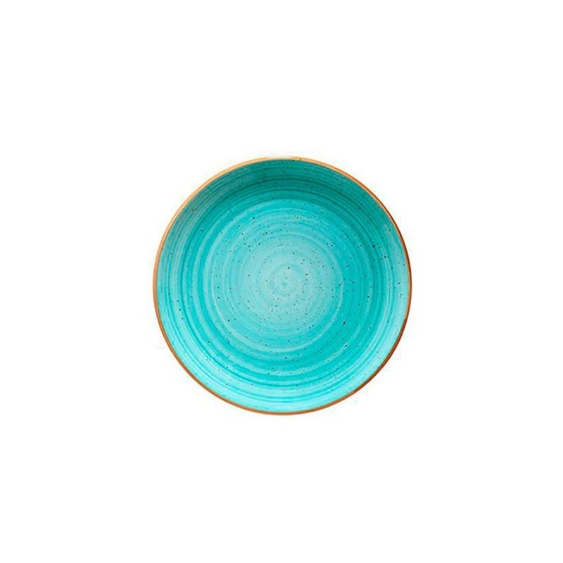 Plato llano del modelo Aqua de la marca Bonna de 27 cm de diámetro. Plato coupe, con pie que tiene un bol ancho pero poco profundo. Realizado en porcelana de alta calidad. El color se aplica al esmalte, después de lo cual se hornea en el horno y no se desvanece con el tiempo. La porcelana es un material cerámico que posee cualidades muy valiosas en hostelería ya que, aunque son de apariencia delicada, poseen gran impermeabilidad y resistencia a choques térmicos, lo que les permite soportar altas temperaturas. La marca Bonna con diseño versátil y genérico, adecuado para establecimientos que buscan sobriedad y practicidad a hora de elaborar sus cartas. Aqua está diseñada para que en tu mesa crees ambientes únicos y relajados, con su diversidad de formas tendrás la opción de diferentes presentaciones para tus platos, mezclas y combinaciones en momentos casuales y semi-casuales. Aqua nos da el resultado de estas piezas en color azul con bordes de color tierra que nos inspiran con su diseño.