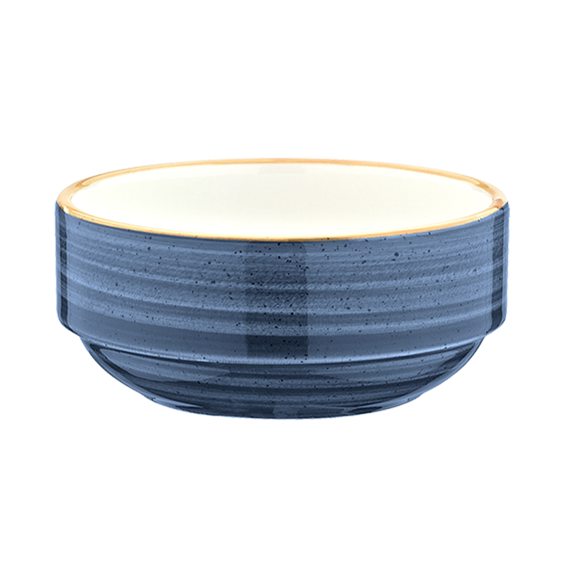 Bowl apilable Dusk, fabricado en porcelana de alta calidad. El esmalte horneado asegura que el color no se desvanezca con el tiempo. Resistente a choques térmicos, apto para lavavajillas, congelador y microondas, ideal para hostelería por su combinación de delicadeza y durabilidad.