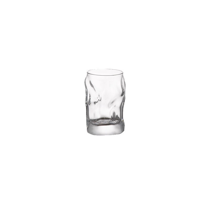 El vaso shot Sorgente de 2.25 oz (modelo 340440) está fabricado en vidrio de alta calidad por la prestigiosa marca Bormioli. Con un diseño ondulado distintivo de la colección Sorgente, este vaso pequeño es ideal para servir licores, shots y degustaciones en hoteles, restaurantes, bares y eventos especiales.