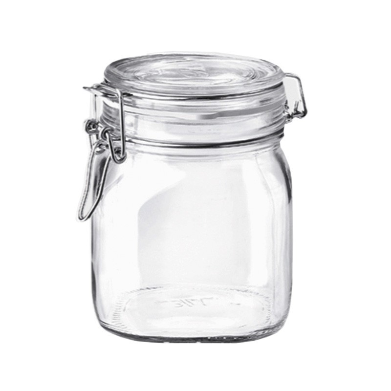 Tarro hermético del modelo Fido de la marca Bormioli Rocco de 750 cc en transparente, una pieza muy valorada y resistente.