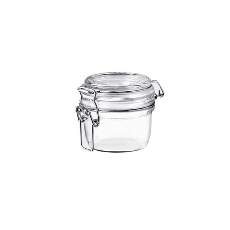 Tarro hermético Fido 200 cc de vidrio, diseño funcional de Bormioli ideal para hoteles, restaurantes y hogares.